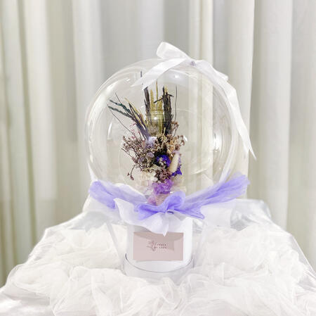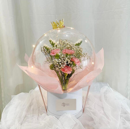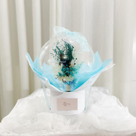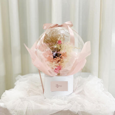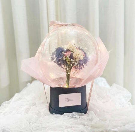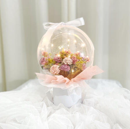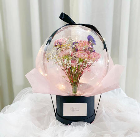 a miniature flower balloon made of a 20cm acrylic sphere and artificial flowers. Fairy lights are not yet included.This may be delivered nationwide.dimensions: 12.5" H x 8" W